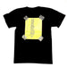 Black heavyweight soft cotton unisex t-shirt, screen printed on front and often on back. See photos