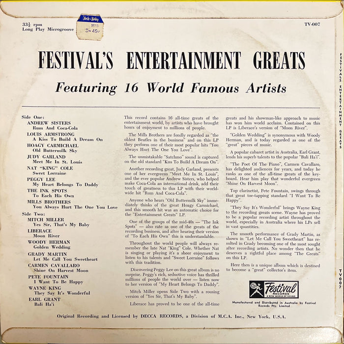 Various - Entertainment Greats (Vinyl LP)